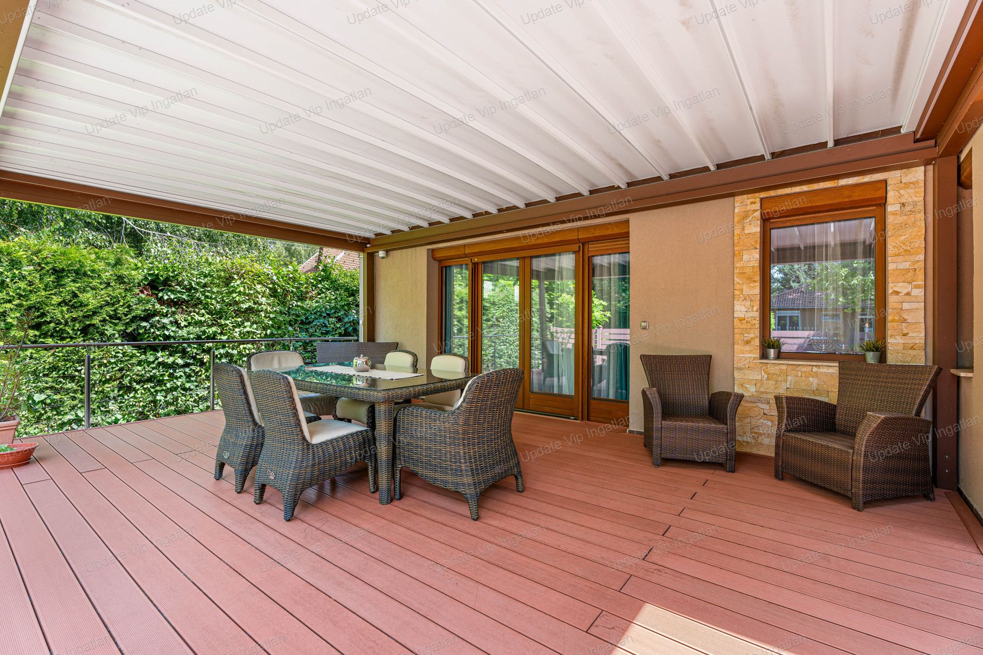 40m2 -es fedett terasz amelyet egy gombnyomással nyitottá lehet tenni.