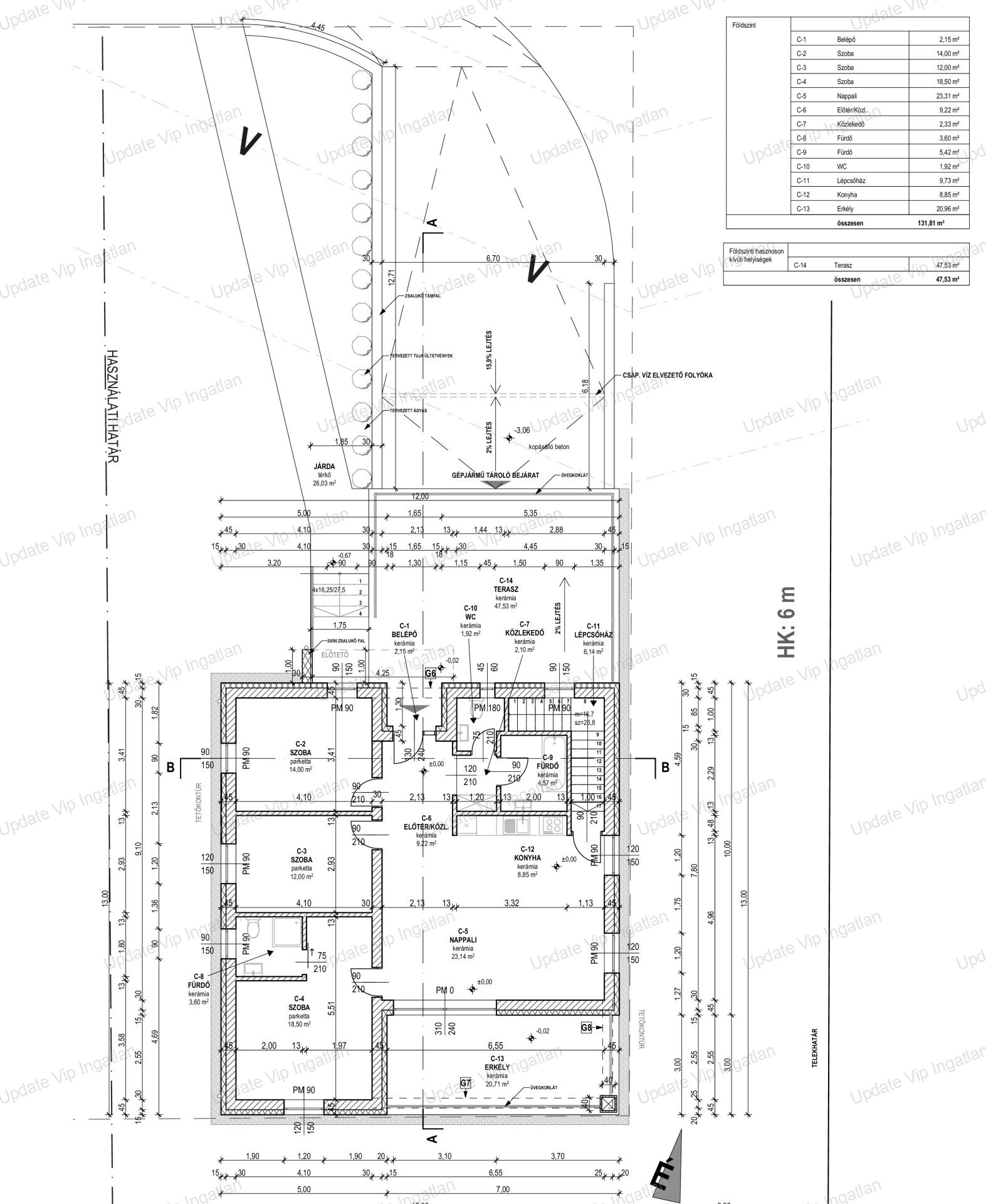 • Garázs: 37,16 m² (kétállásos)