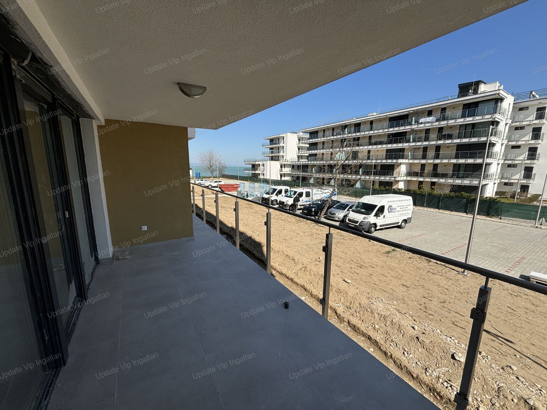 Az ötemeletes apartmanház a Balatonra merőlegesen helyezkedik el, így biztosítva a lakásokból az