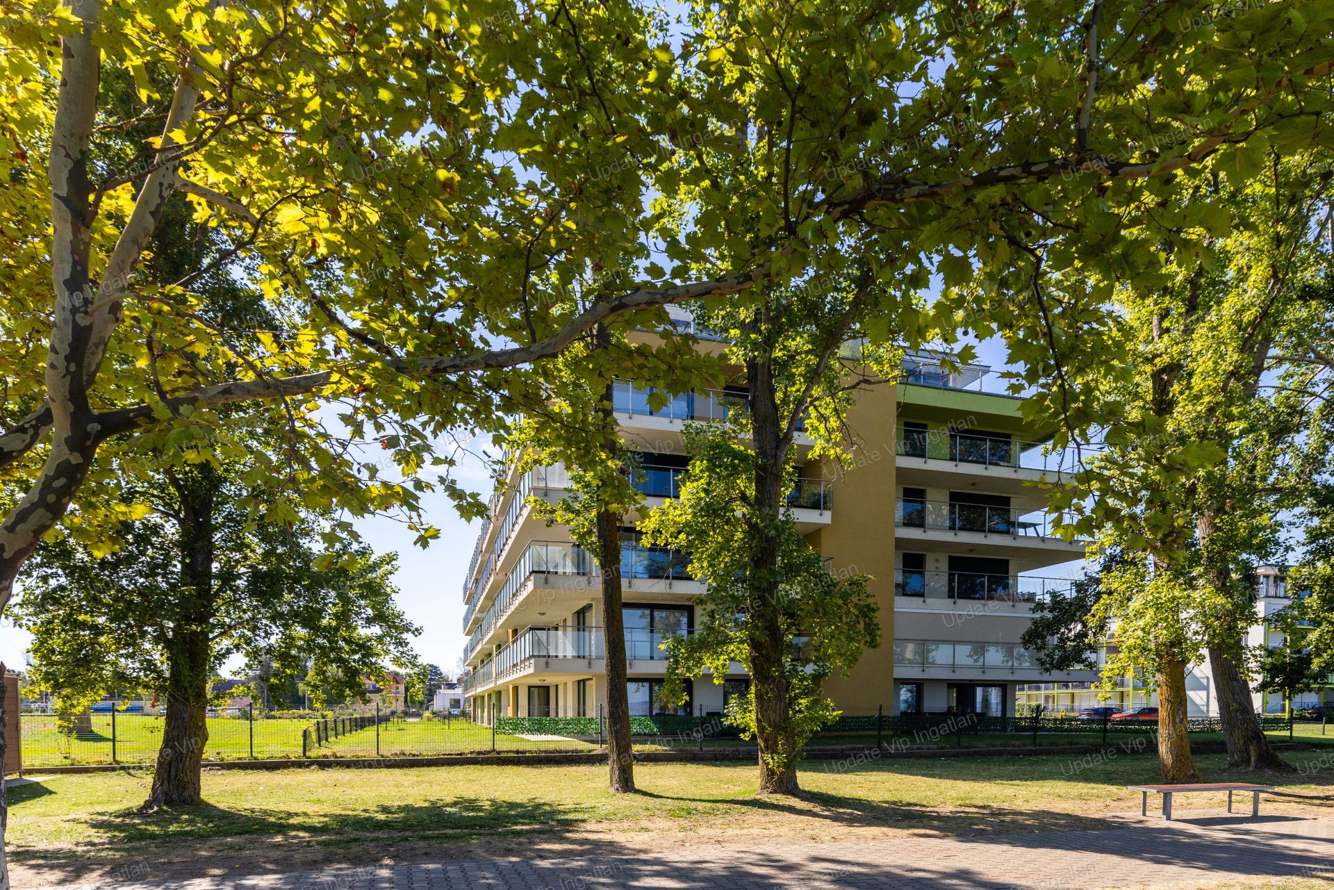 Az ötemeletes apartmanház közvetlenül a Balaton partra (szabadstrand) épült,