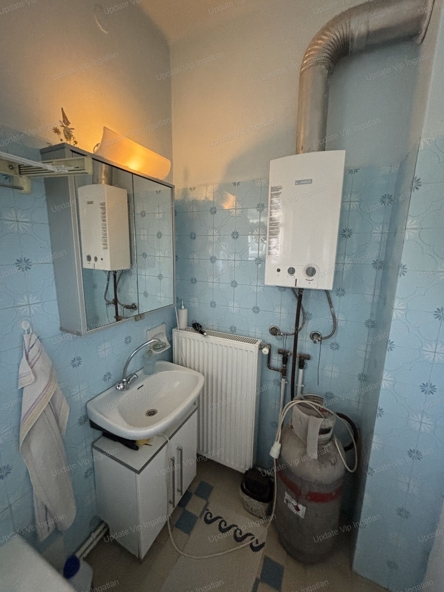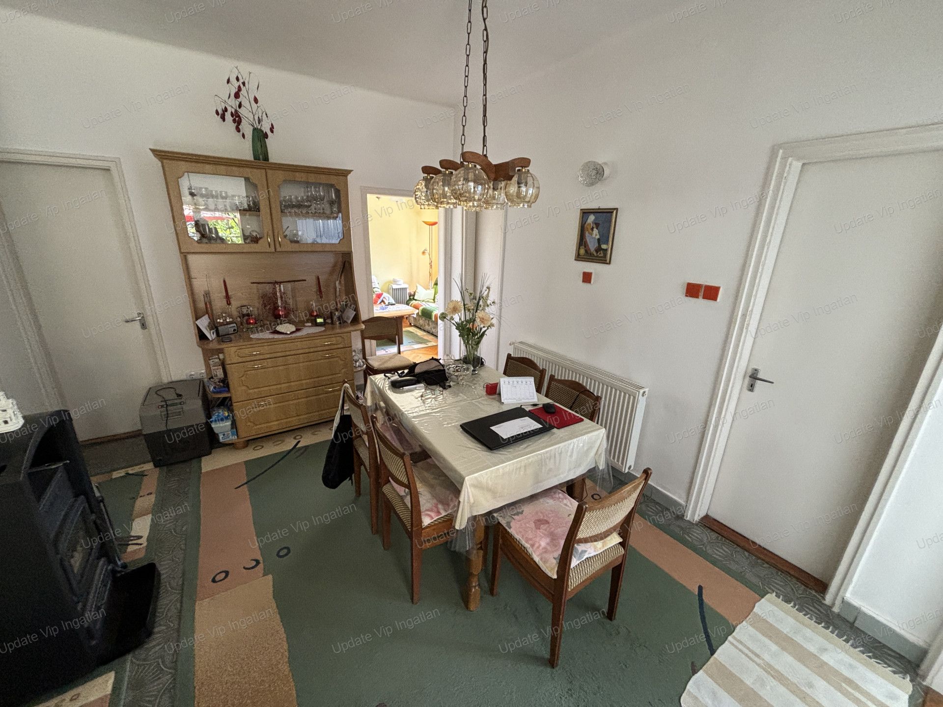 Fűtés: gázkazán radiátorokkal (földszinten), kályha a földszinten