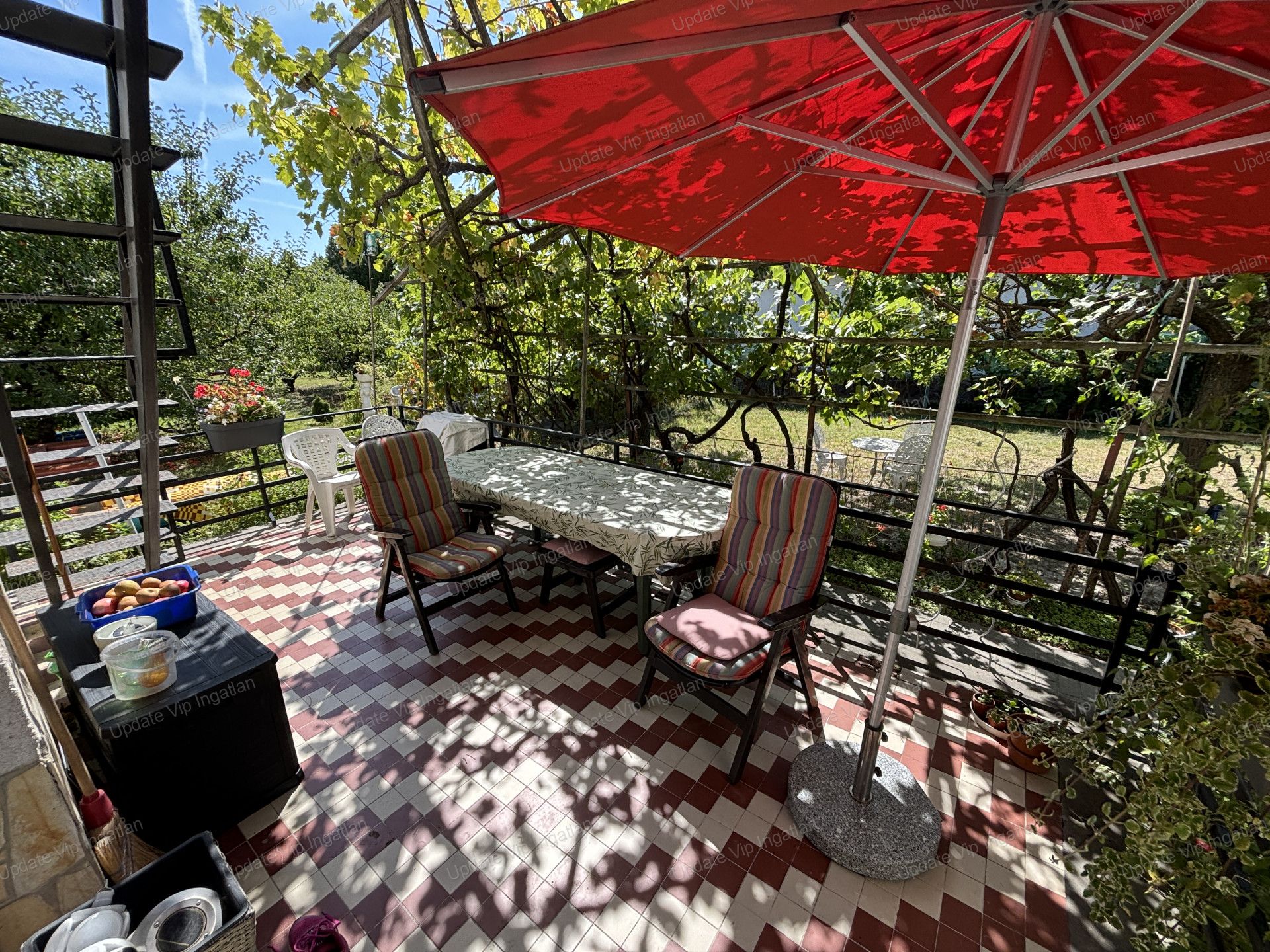 Telek: 1240 m² – fúrt kúttal, gyümölcsfákkal, szőlővel