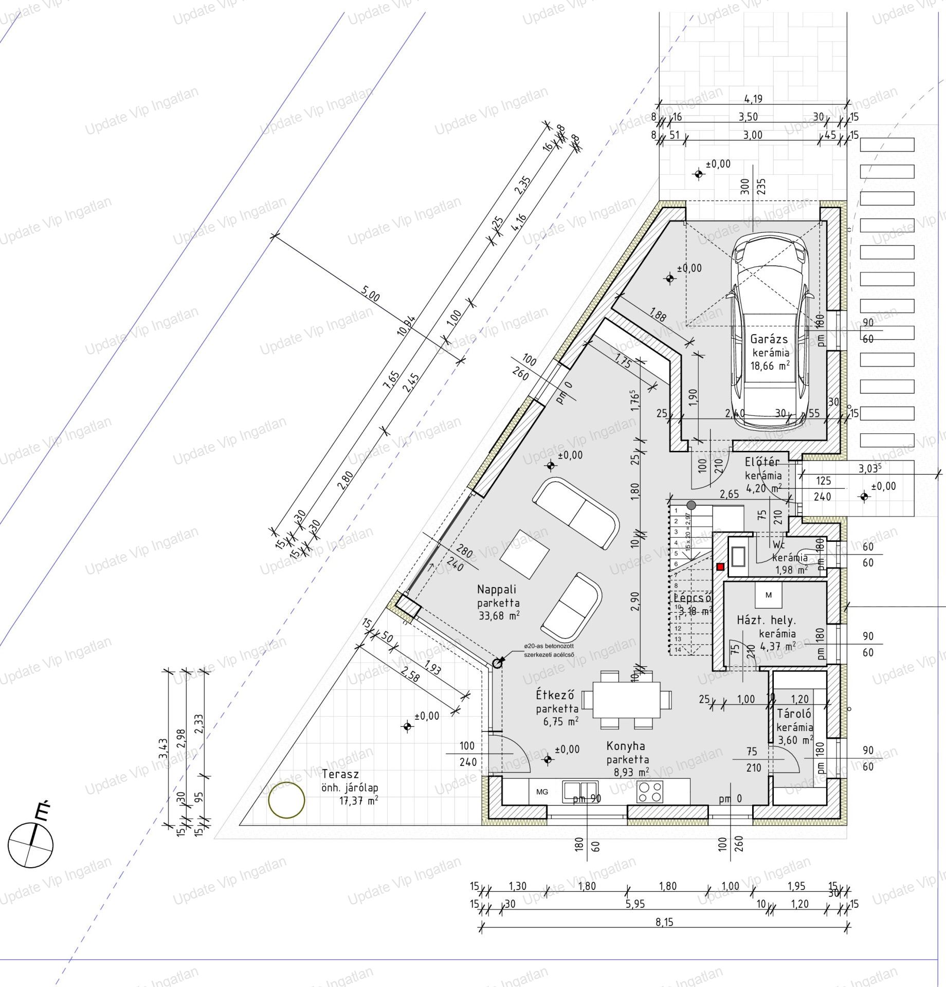 Garázs: Zárt garázs, közvetlen lakáshoz kapcsolva